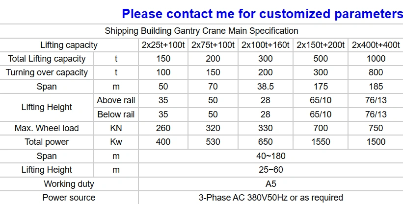 • Wide Span and High Lifting: Designed for shipyards, dry docks, and platforms. Handles complex lifting tasks with high capacity, wide span, and great height.