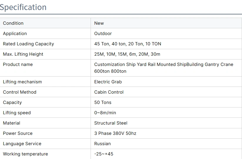 • Multiple Functions: Supports single and dual hook lifting. Meets various needs such as turning and moving ship sections. Handles different lifting modes with efficiency.